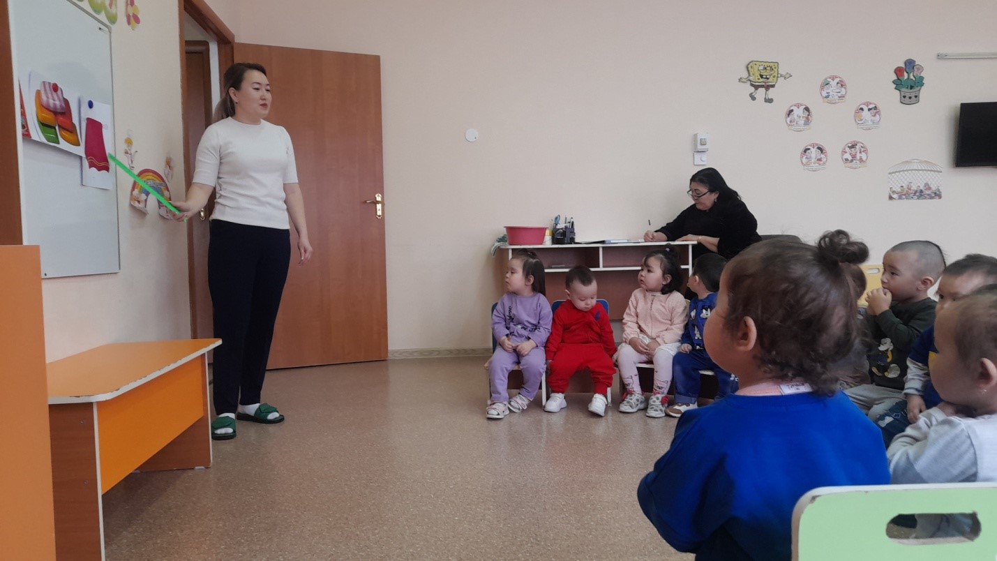 Сабақтың мақсаты: Балаларды дұрыс жуына білуге дағдыландыру, киімдердің атын дұрыс атай білуге баулу, шешінгенде киімдерін дұрыс қоюға, балаларды су мен сабынды пайдалана білуге үйрету. Қуыршақты шомылдыру барысында балалардың тілін дамыту, ойыншықтармен дұрыс ойнай білуге тәрбиелеу.